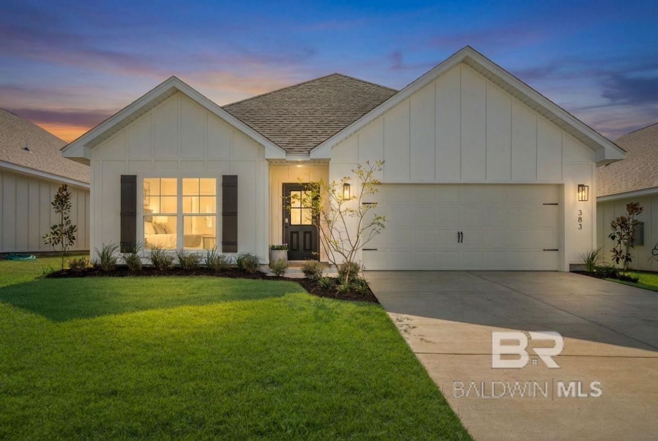 If you're searching for an upgraded home in Gulf Shores that goes beyond builder basics, 383 Haise Lane in Aventura deserves a close look. This GOLD FORTIFIED 4 bedroom, 2 bath Rhett floorplan offers 1,835 square feet of thoughtfully enhanced living space in one of Gulf Shores' established communities with a pool and playground, just minutes from beaches, shopping, dining, and golf.Tray ceilings in the living room and primary suite add architectural dimension to the open layout. What truly elevates this home is the level of improvements throughout. All lighting has been replaced and expanded with energy efficient LED fixtures, and each bedroom includes additional recessed lighting for a bright, refined finish. Ceiling fans have been upgraded, and plumbing fixtures in the kitchen and baths have been replaced for a cohesive, modern look.The kitchen is a standout feature with a marble island topped in Dolomite, known for its strength and durability, paired with a farmhouse sink, high end Delta faucet, upgraded cabinet hardware, and a custom backsplash. Shiplap accents add character to the kitchen wall, primary bedroom wall, and the area outside the laundry room, creating a defined mudroom style space. The laundry room includes added cabinetry, and the primary closet has been redesigned with a custom wood shelving system in place of wire shelving. Bathrooms have been refreshed with new mirrors and lighting. Outside, the landscaping has been completely revamped with new plant materials, enhanced exterior lighting, and a freshly painted back porch floor. Washer, dryer, and Bosch refrigerator convey, adding everyday convenience. Buyer to verify all information during due diligence.