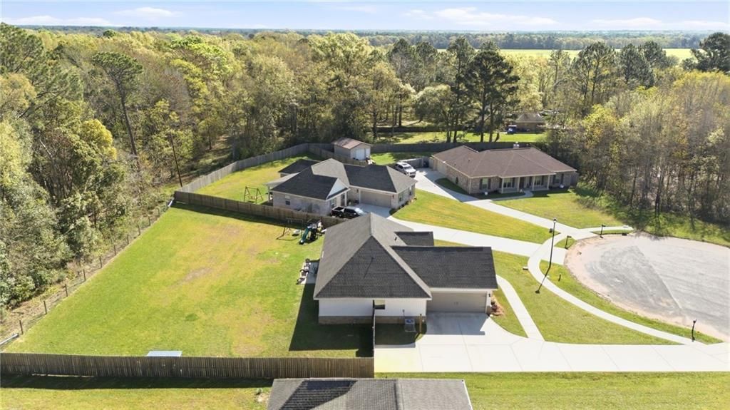 Welcome to 9960 Desiree Ct N in the sought-after Kipling Station community of Theodore, where modern design meets peaceful, tucked-away living at the back of the neighborhood. Built in 2023 to Gold Fortified standards, this 4-bedroom, 2-bath home offers 1,703 square feet of thoughtfully designed space with a bright, open layout that feels both comfortable and connected. The kitchen, dining, and living areas flow seamlessly together, creating an ideal space for entertaining or everyday living. Dark leathered granite countertops add a unique character to the home, complementing the modern finishes and abundant cabinetry throughout. Luxury vinyl plank flooring in the main living areas adds both warmth and durability, while the living room is filled with natural light and offers plenty of space to relax. The split bedroom floor plan provides privacy and functionality, with one bedroom positioned just off the living room-perfect for a home office, guest room, or flex space. The primary suite serves as a peaceful retreat with a stylish en-suite bath, while two additional bedrooms and a second full bath offer comfortable accommodations for family or guests. Step outside to a large fenced-in backyard that backs up to a wooded area, providing added privacy and a quiet place to unwind. Located in a peaceful and desirable community, this home offers the perfect blend of quality construction, modern style, and everyday functionality.